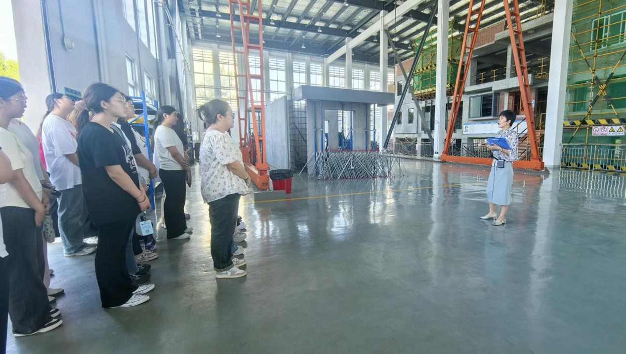 该院王丽娟、丁红艳、刘姝珍三位优秀讲解员带领新生分专业参观建筑实训工厂,详细介绍了建筑实训工厂工法楼、装配式建筑实训区、个性化实训集成区域、安全教育体验区等多个功能区域,让学生对我校的实习实训条件、师资力量有了更深入的了解,同时也激发了努力学好专业知识和专业技能的热情,为专业素养提升奠定良好基础。