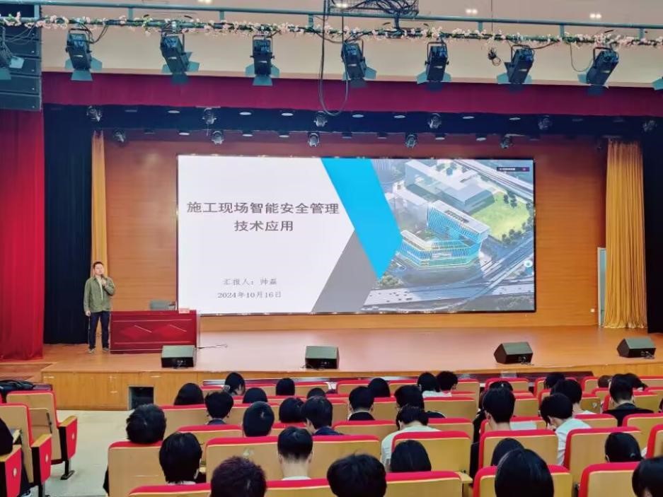 帅磊首先以传统建筑行业安全管理的薄弱点结合信息时代物联网技术和人工智能技术的飞速发展,引出智慧工地理念的必要性和先进性。接着以其企业实践参与的工程项目为案例,介绍了项目概况、工程建设重难点及应对措施,重点展示了施工机器人、AI隐患识别系统等智能安全管理技术在项目中的运用。使师生们提高安全防范意识的同时,也感受到了科技赋能安全生产的魅力。