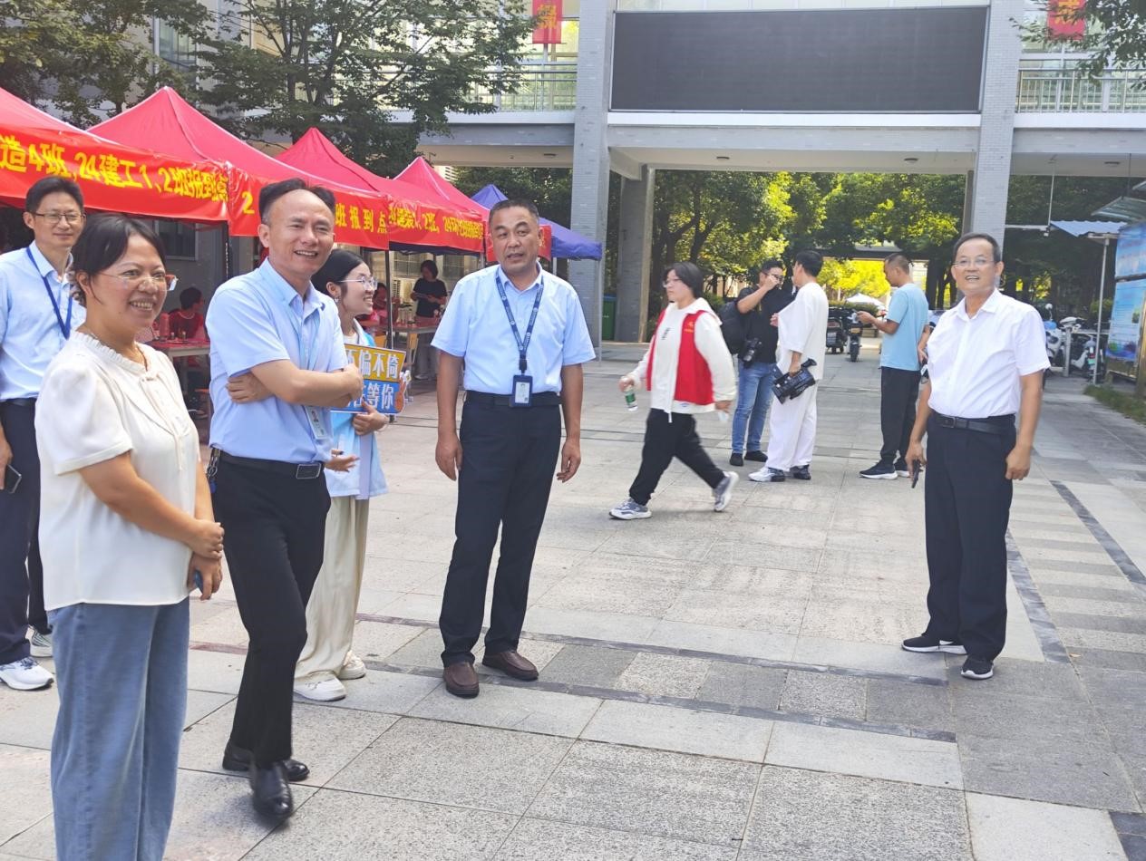 校长檀明、副校长范家茂、教务处处长窦红平、鼓山校区管委会主任谭连生一行深入迎新现场,与新生及家长话家常,鼓励新生尽快适应大学学习生活,实地了解报到实时进展情况和服务保障工作,檀明校长还亲笔写下对于allwincity万象城和新生的寄语和祝福。