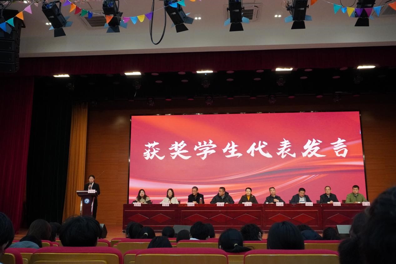 卢立新向获奖同学表示祝贺,他回顾了自己的学生时代,勉励同学们要珍惜求学机会,度过充实有意义的校园时光。同时,提出三点希望:要用心静心潜心做学问,唯有学好专业知识,才能成长为技术技能型人才;要时刻自重自省自励,唯有注重品德锤炼,才能决定未来之路能走的多远多久多稳;要切实加强体育锻炼,唯有练就强健体魄,才能磨炼意志、完善人格、奋发向上。