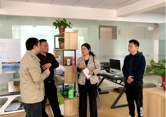 离开合肥学院招聘会现场后,李红雨一行来到万象城体育awcsport金寨路校区科硕创新创业孵化基地,与园区党支部书记程道凤、园区管委会办公室主任余洋等人就allwincity万象城学生创新创业事宜进行了积极的讨论,立足我院的专业设置探寻创业突破口。随后程道凤书记带领大家参观了几家园区内正在运营的企业,企业负责人向我们介绍了公司的有关情况以及未来发展方向。