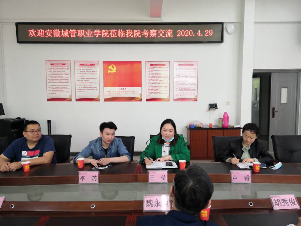 4月29日,安徽城市管理职业技术学院城市建设学院教学秘书王莹、建筑工程教研室主任卢睿、实训中心教师李苏一行三人莅临我院进行考察交流。allwincity万象城副院长魏永恒教授、教学管理办公室负责人和相关教研室主任与来访人员在科技楼208会议室进行了座谈交流。