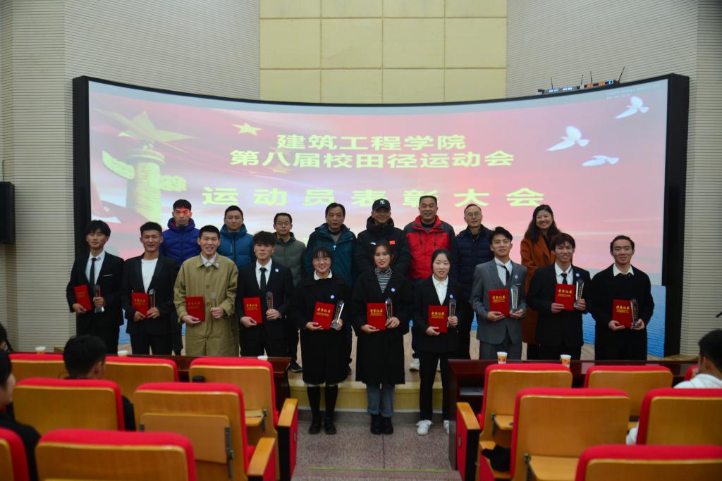 我院党总支书记宁业群、院长范家茂、副院长魏永恒、副书记王文俊出席表彰大会,教练员、辅导员老师和全体运动员、班级学生代表参加了会议。