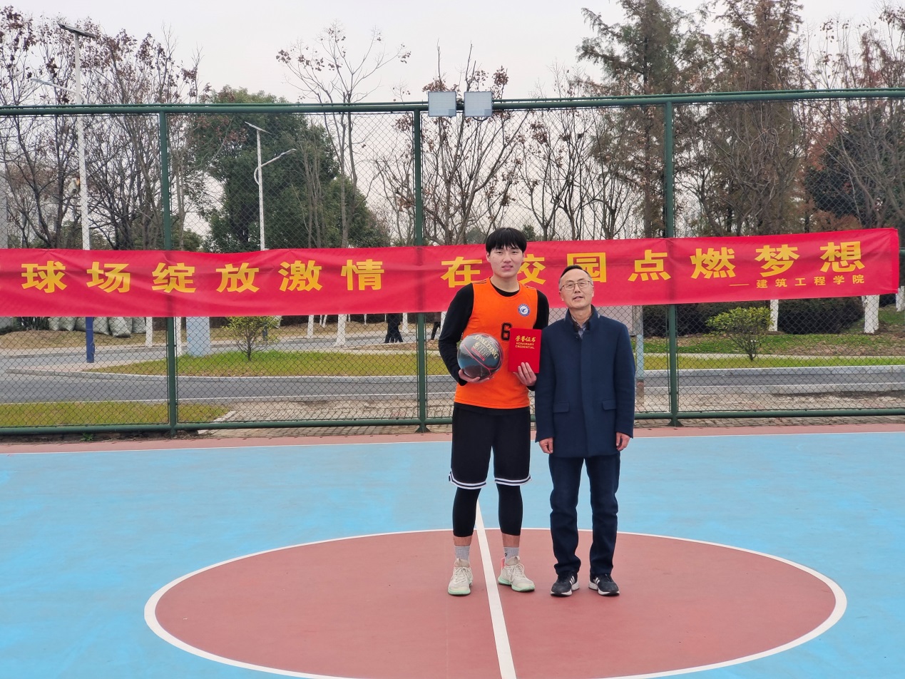 巅峰对决,精彩异常。最终20级建工明星队获胜,20建装1班何亮勇夺全场MVP称号。比赛结束,现场举办了颁奖仪式。学院领导为获奖选手颁发奖杯、奖品,师生集体合影留念。