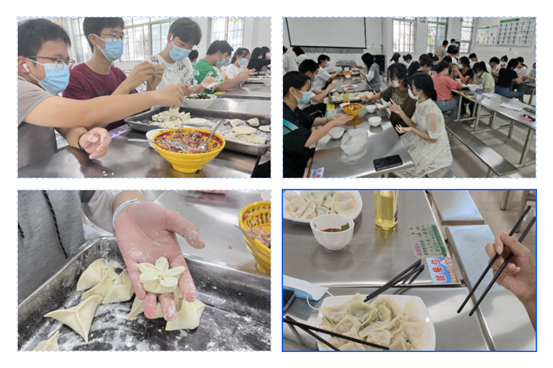 10月3日下午,在一食堂一楼组织开展饺子DIY活动,四十余名学生来到食堂一楼,自觉洗手、佩戴口罩,亲手捏制一个个饺子。