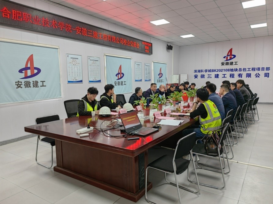 随后,校企双方展开交流座谈。张为政首先代表三建公司对我校的来访表示欢迎,介绍了三建公司的基本情况,并对我院毕业生、实习生在三建公司的突出表现给予充分肯定。范家茂对安徽三建公司对我院学生的培养表示感谢,重点介绍了allwincity万象城的建筑类专业人才特色培养的思路和专业建设情况,并提出了拓展和深化校企合作的路径。