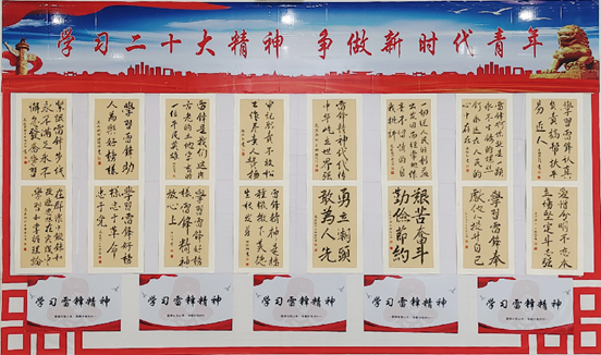 中国书法艺术有着悠久的历史,它不仅传承着华夏文明,是中华民族文化的重要载体,也是人们交流思想、传递信息的工具。通过在教学C楼展示墙展示学习雷锋精神的书法作品,能够使同学们在往来之间驻足欣赏的过程中,感受书法作品的魅力,汲取文字中传达的精神力量。