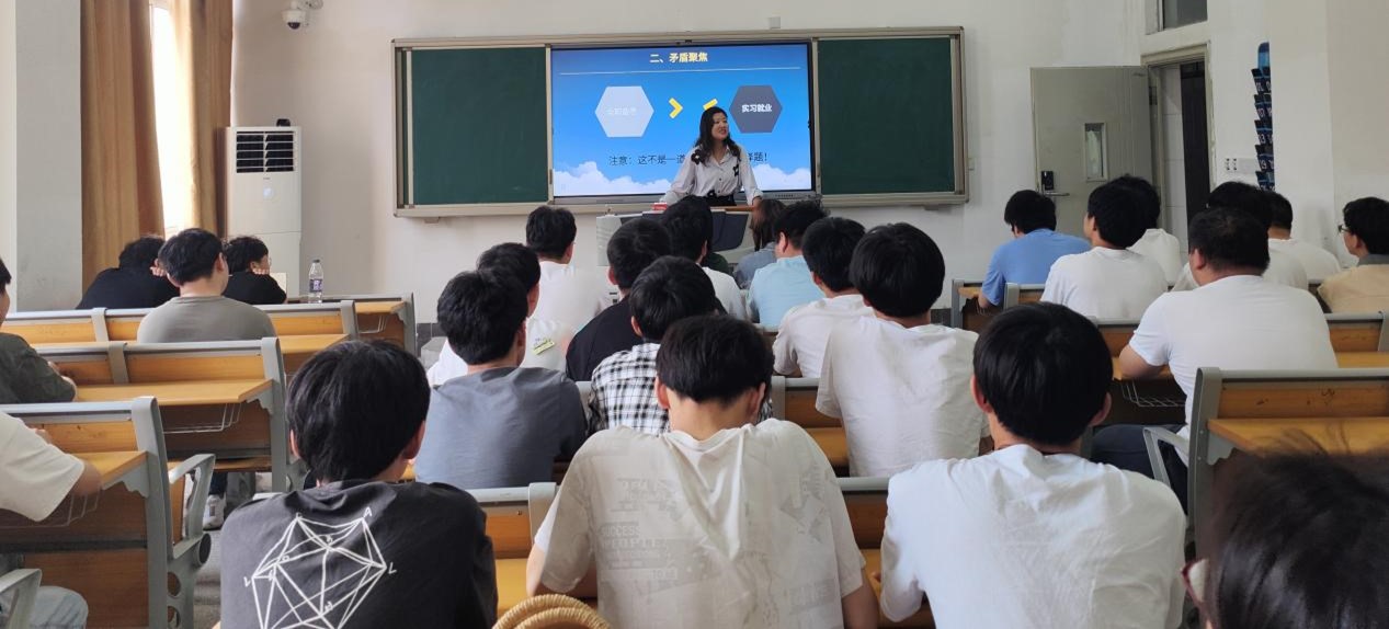施芳芳以“升OR不升,这不是一道选择题”切入,从学历提升的价值意义、目前面临的矛盾聚焦、可选方案的介绍三个方面着手,以身边的事例、详细的数据和自己的考学、工作经历跟同学们进行交流分享。最后,提出四点建议:一是心之所向,目标定向;二是实力评估,全面客观;三是做好规划,自立自律;四是坚定目标,勇毅前行。