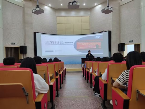 会上,郑晨宇从比赛筹备、日常训练、比赛中的操作、以及安徽省技能大赛专升本政策方面作了介绍。重点谈了三点,一要充分了解技能比赛的赛项、规则;二有针对性坚持认真训练,同时多看书加强知识储备;三在比赛过程中一定要端正心态,沉着冷静。分享结束后,他用“大赛点亮人生,技能改变命运”鼓励学弟学妹们积极踊跃参加各项专业技能大赛。