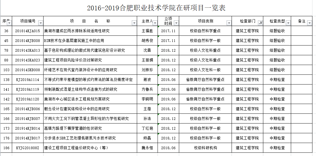2016-2019万象城体育awcsport在研项目一览表