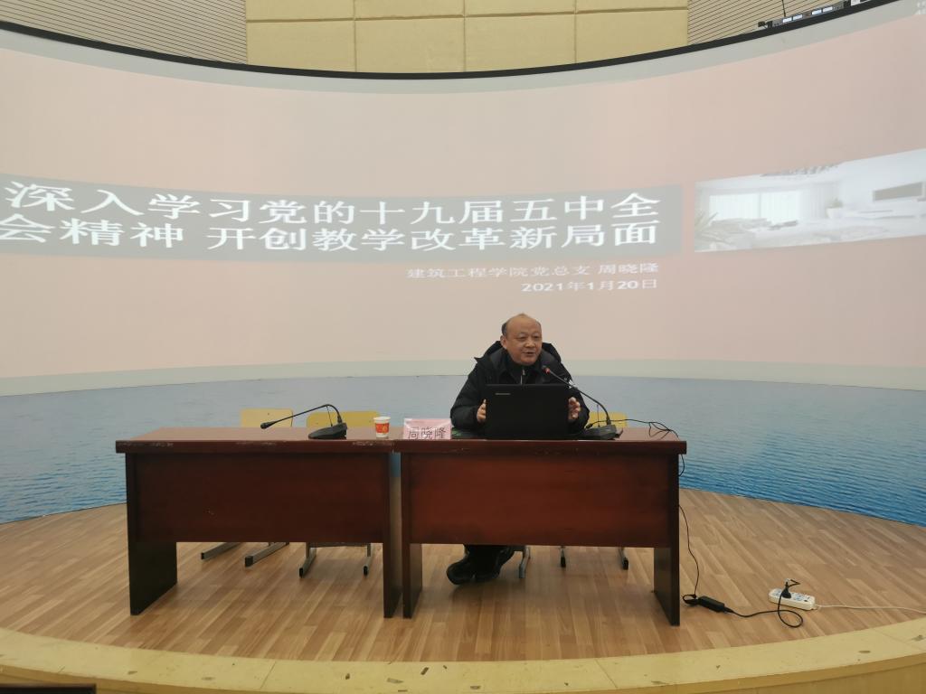 2021年,是“十四五”开局之年,也是乘势而上开启全面建设社会主义现代化国家新征程、实现第一个百年奋斗目标的关键之年。为使我院党建工作开好局、起好步,元月20日下午,我院党总支邀请校党委委员、副校长周晓隆为我院全体教职工上了题为“深入学习党的十九届五中全会精神、开创教学改革新局面”的非常生动而又深受启发的党课。