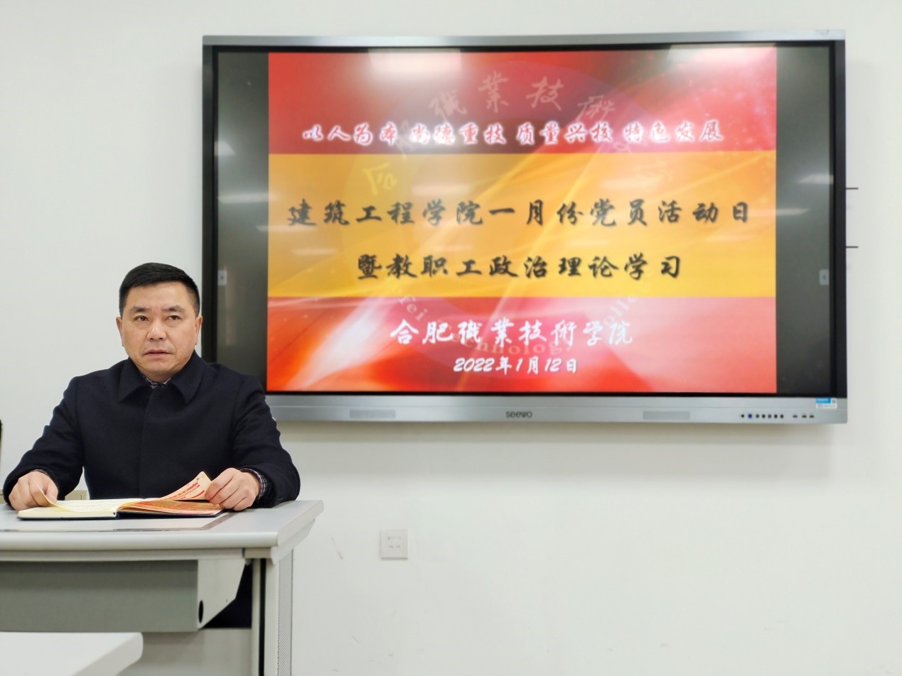 根据校党委统一安排部署,结合我院工作实际,1月12日下午,我院党总支组织全体教职工在建工楼301召开一月份主题党日暨政治理论学习活动,校党委副书记胡其云出席了会议,活动由党总支书记宁业群主持。