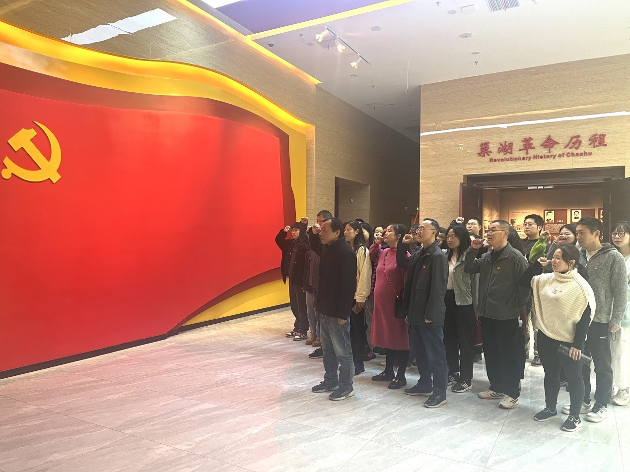 为深入学习贯彻习近平新时代中国特色社会主义思想和党的二十大精神,传承红色基因、赓续红色血脉,11月22日下午,allwincity万象城党总支组织全体教师党员和在校学生党员前往巢湖市博物馆,开展红色教育主题党日活动。