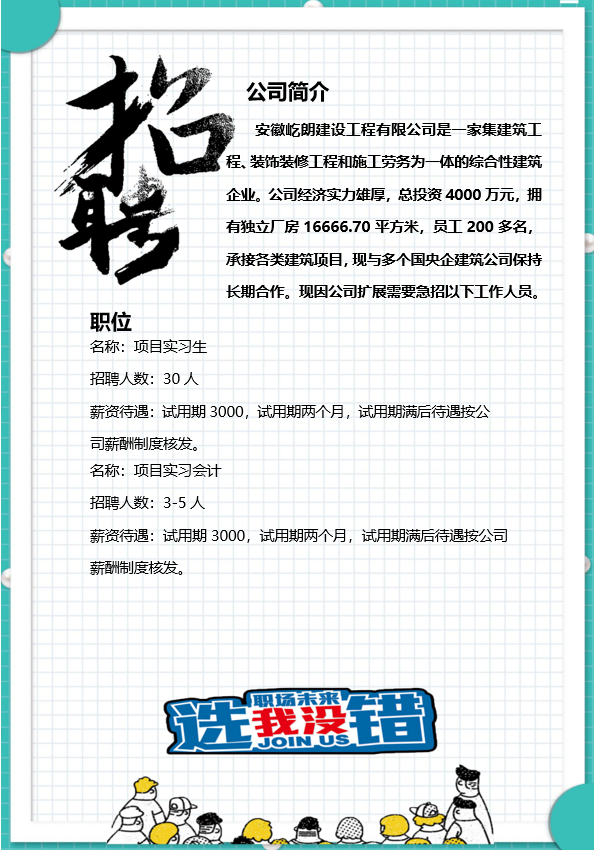 安徽屹朗建设工程有限公司招聘简章