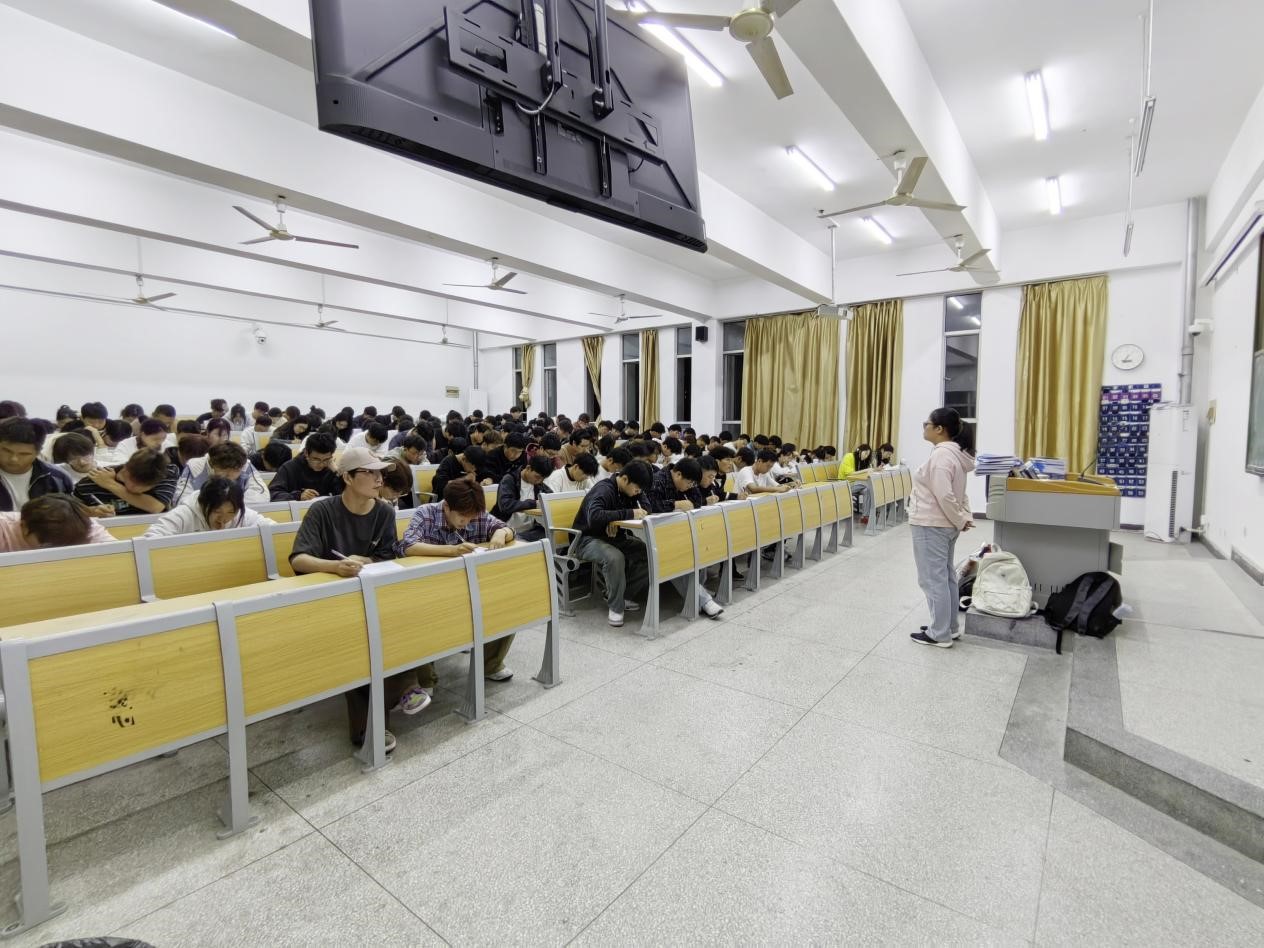 考试以闭卷形式进行。考试过程中,新生神情专注,认真作答,展现出良好的考试风貌和扎实的学习功底。监考人员与巡考员各司其职,严格维护考场秩序,确保考试公平公正。整个考场秩序井然,考风良好。